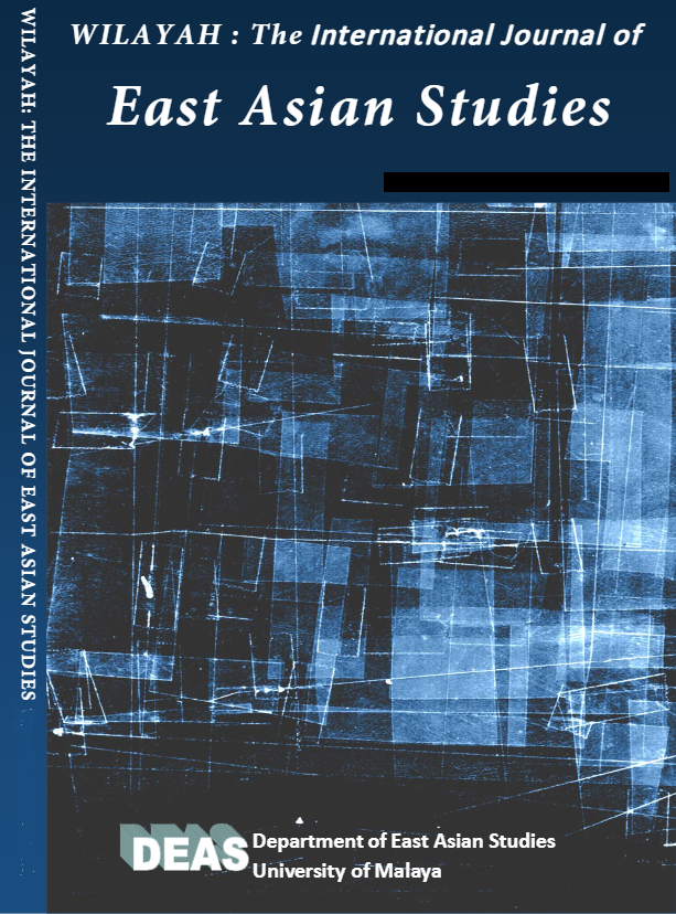 Vol. 12 No. 1 (2023)WILAYAH: International Journal of East Asian Studies (formerly known as IJEAS : International Journal of East Asian Studies) aims to provide a platform for exchanges of ideas related to the East Asian region with particular emphasis on Japan, China and Korea. It offers informative and insightful multidisciplinary discourse for academics, policymakers and students alike. The result is a provocative exploration of the most pressing East Asian political, economic and social challenges of our time. WILAYAH is a blind peer-reviewed publication by the Department of East Asian Studies, Faculty of Arts and Social Sciences, University of Malaya, Malaysia.